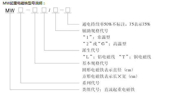 MW起重(zhong)電磁鐵型号(hao)說明: